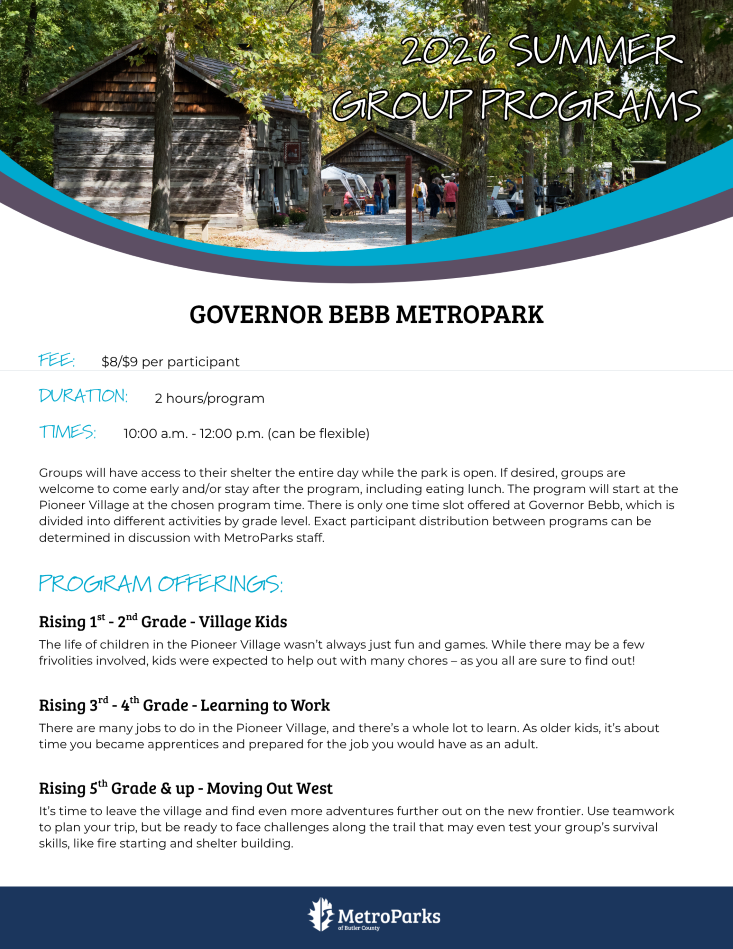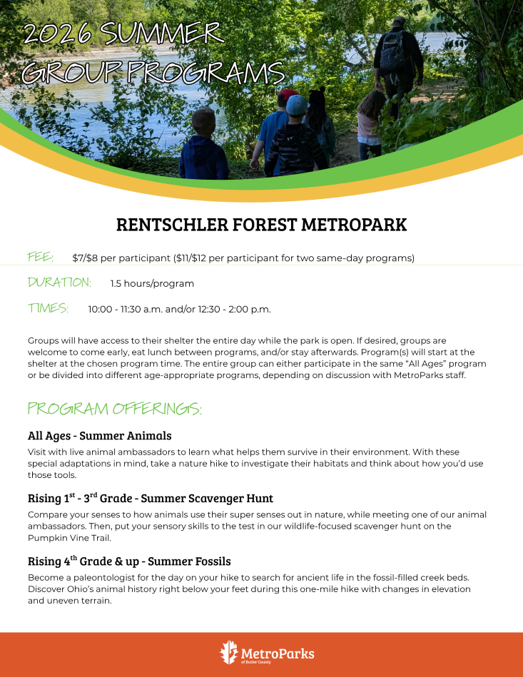 MetroParks of Butler County offers unique, engaging, educational, and fun private fee-based programs for children and adults of all ages, backgrounds, and